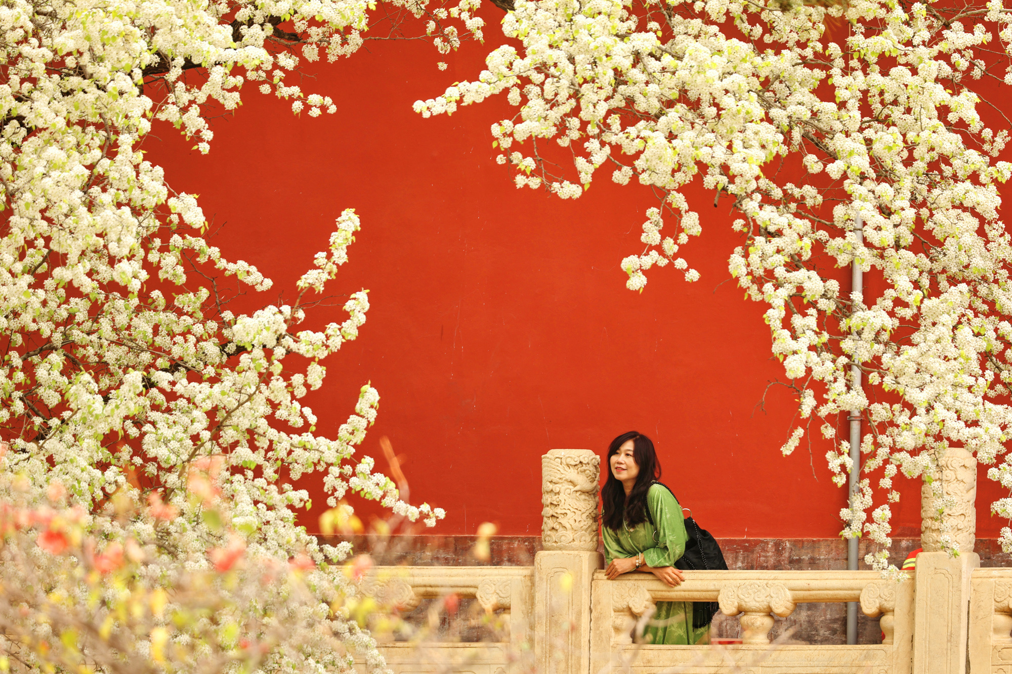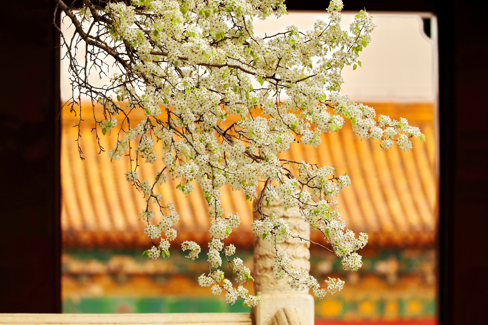 近日,北京昌平区明十三陵长陵景区内杜梨花盛开,将这座皇家陵寝装扮得绚烂多姿,吸引游客前来观赏拍照。